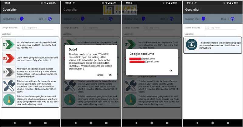 In case, if you have already installed the Google Play Services using a different method and facing errors, it is advisable to reset your device and start fresh with the Googlefier. The app also comes with a unique feature that will easily let you undo all of these changes and restore your Huawei device to its pre-GMS state.