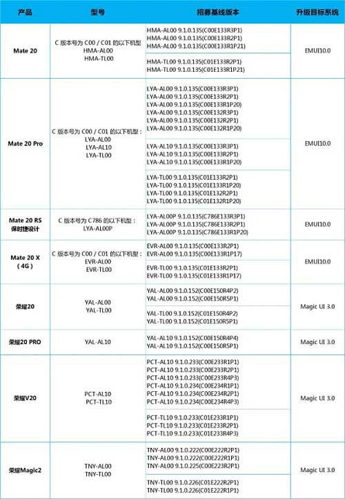 As for the Honor V20 and Magic 2, versions 9.1.0.233/234 and 9.1.0.222/225/226, respectively, will be required before being enrolled into the new Android 10 beta program.